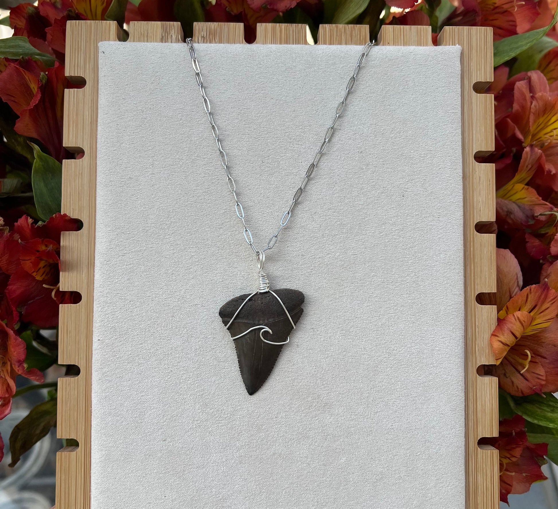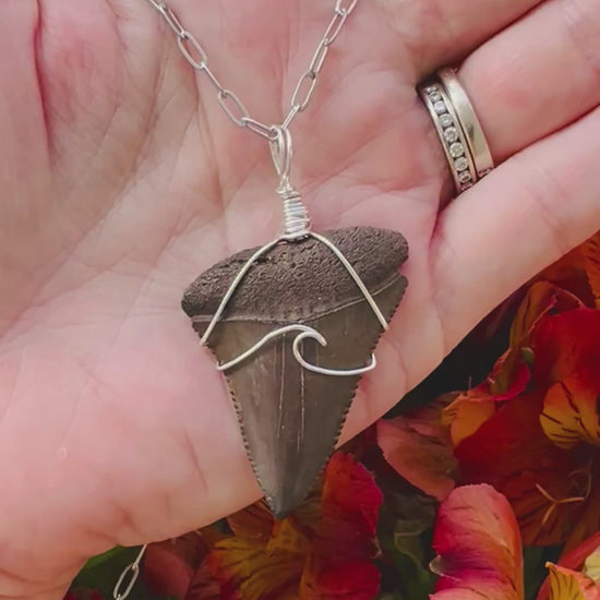 Earthy meets untamed with this chocolate-toned Great White shark tooth, found in our local Carolina rivers! The dainty paper-clip chain adds that effortless boho edge—delicate yet daring. A warm, grounded fossil with wild energy, crafted into a one-of-a-kind piece made for free spirits, ocean lovers, and anyone who wears their style a little fierce.