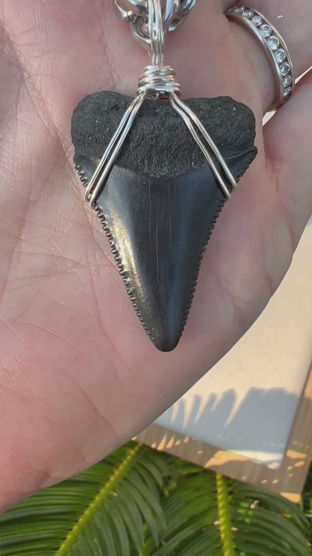 Own a piece of ocean legend with this GORGEOUS authentic great white shark tooth necklace! Carefully wrapped in silver wire to maintain its beautiful serrations. No polish. No pretense. Just the ocean’s wild legacy ready to be showcased around your neck.