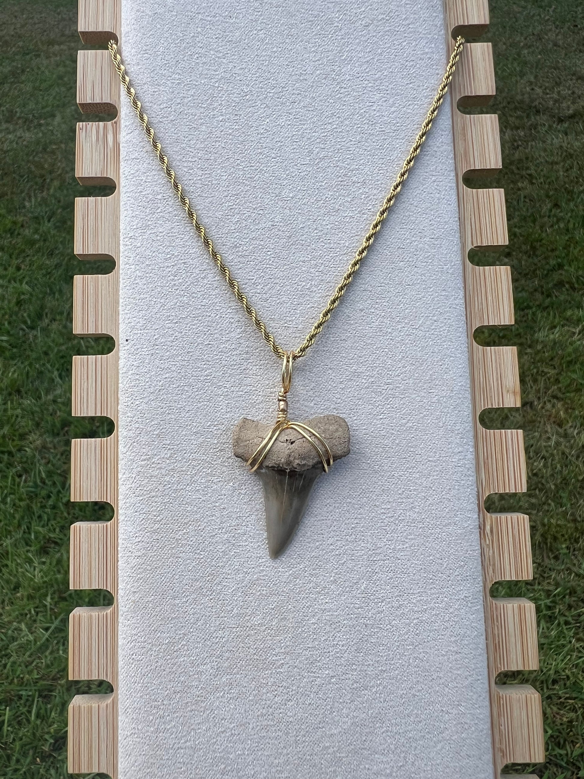 Carry a piece of ancient ocean history with this genuine fossilized Mako shark tooth necklace, found in the famous Lee Creek Mine, North Carolina. Hand-wrapped in gold wire and set on a durable rope chain, this one-of-a-kind fossil shark tooth pendant makes the perfect gift for ocean lovers, fossil hunters, and anyone who treasures unique jewelry with a story.