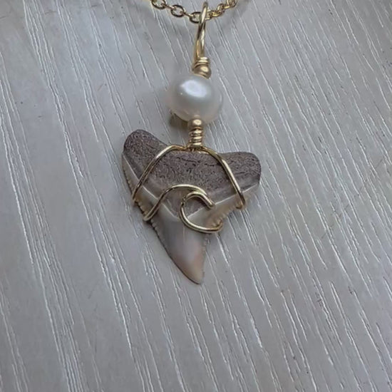 Bring the magic of the shoreline to your everyday look with this one-of-a-kind bull shark tooth necklace. Hand-wrapped with a delicate wave design and paired with a lustrous freshwater pearl, this piece blends coastal elegance with bold, natural charm.