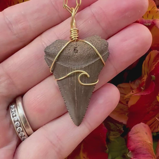 Chocolate Great White Shark Tooth Necklace- Gold